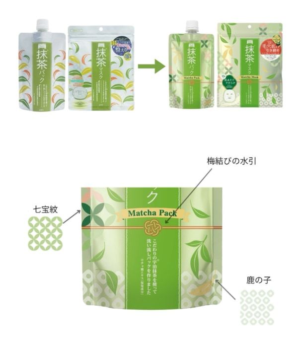 そして、“抹茶らしさ”や和の世界観が伝わるデザインに刷新し、七宝・鹿の子・水引などの和柄を組み合わせ、ギフトにも選びやすい華やかさと親しみやすさを表現しています。