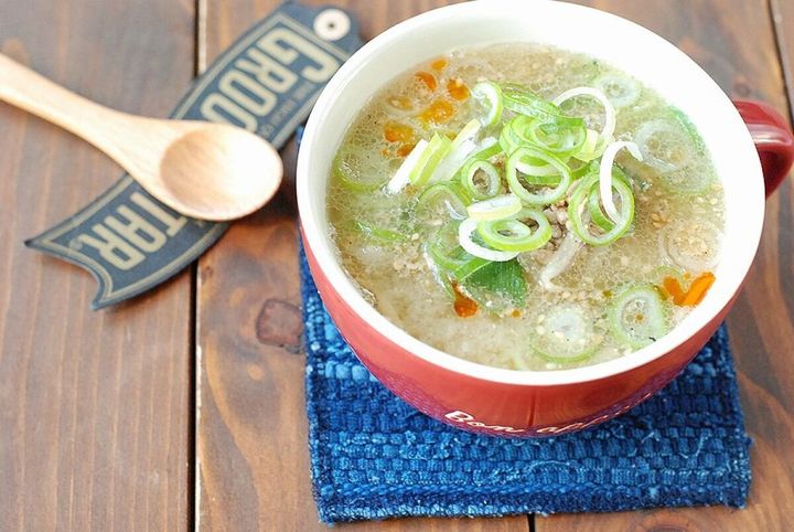 レンチンで完成!もやしとひき肉の味噌スープの作り方