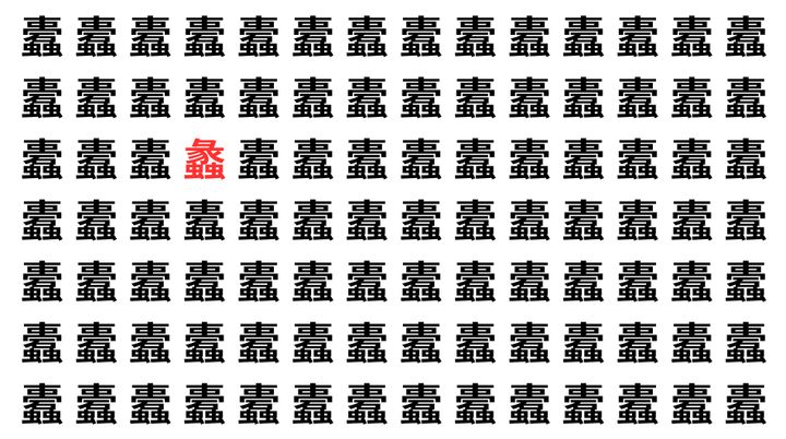 たくさんの「蠹」の中に、よく似た別の漢字が1文字だけ隠れています。