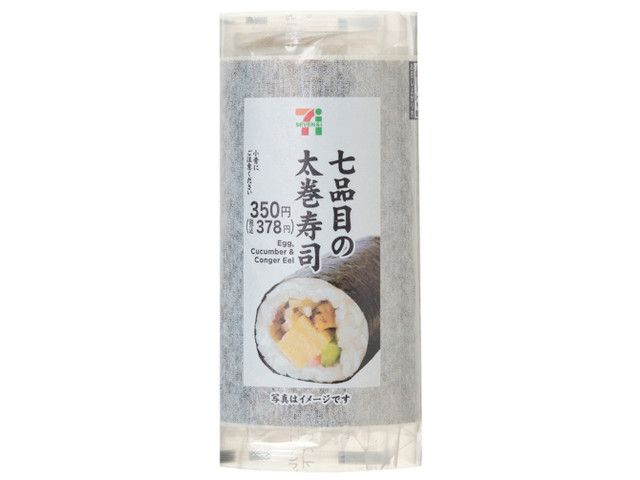 厚焼き玉子穴子きゅうりれんこん椎茸煮かんぴょうおぼろの7種の具材を使用した太巻寿司です。 カロリー:255kcal 【販売地域】北海道、東北、関東、甲信越、北陸、東海、近畿、中国、四国、九州