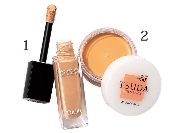 1. ディオールスキン フォーエヴァー スキン コレクト コンシーラー 全11色 ¥5,720/パルファン・クリスチャン・ディオール、2. UVカラーバーム SPF50+・ PA++++ 全2色 ¥6,160/ドクター津田コスメラボ