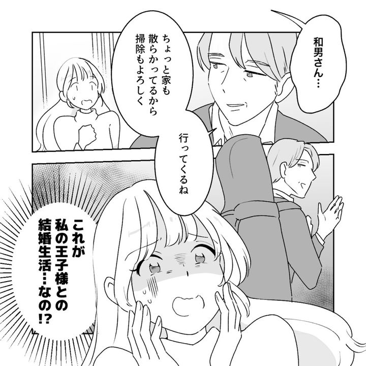 「和男さん・・」と声をかけようとすると、「ちょっと家も散らかってるから掃除よろしく。行ってくるね」そう言うと、ゴルフバッグを背中に担いで家を出て行ってしまいました。「こ、これが・・私の王子様との結婚生活・・なの!?」と、想像とは全く違ったやりとりに言葉を失いました。