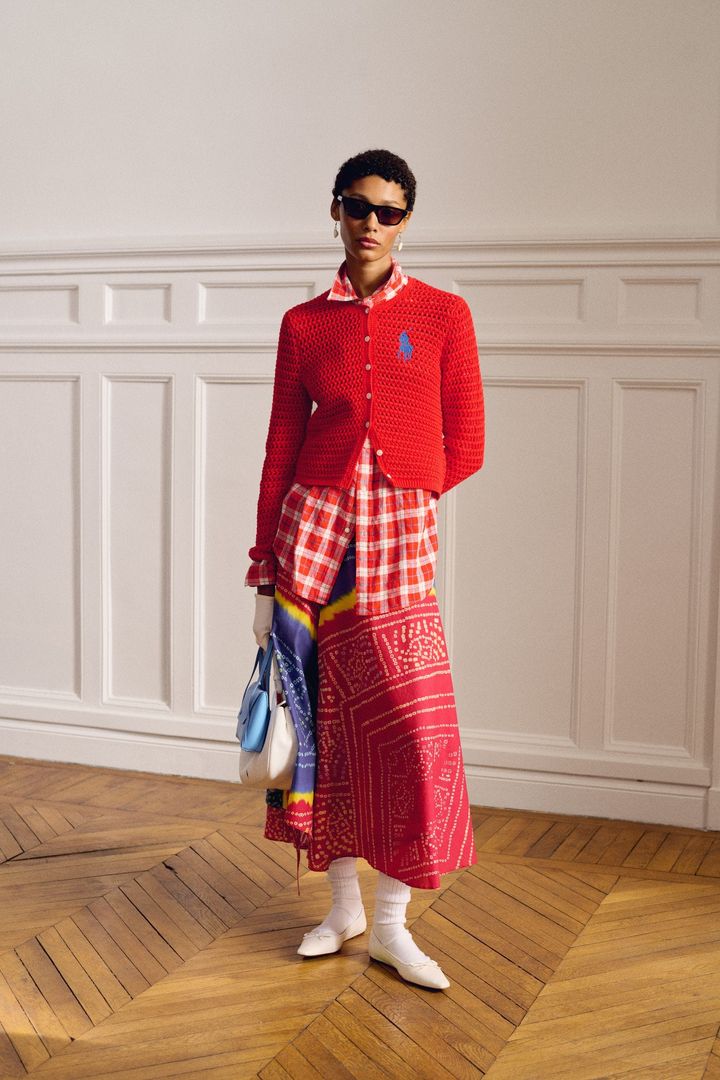 バッグは、ラフィア、畝織コットン、ビーズ、手編みレザーが今シーズンのシグネチャーテクスチャーに。なかでも“ポロ プレイ”には新作のショルダーバッグとメッセンジャーバッグが仲間入りし、旅の高揚感とデイリーな実用性を軽やかに結びつけている。気取らず、洗練されていて、冒険心がありながらも地に足がついている――どこにいても自分のスタイルを手放さない、そんな「ポロ ラルフ ローレン」の女性像を確かに体現するコレクションとなった。