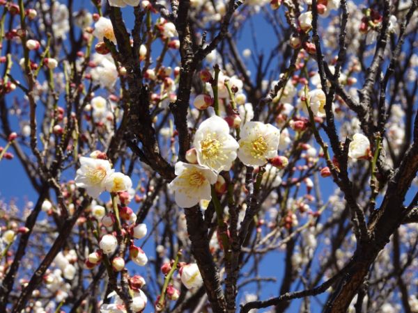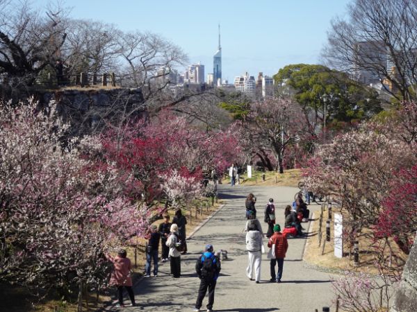春の日差しを浴びて、梅の開花が一気に進み、「二ノ丸梅園」は多くの観梅客で賑わっています。