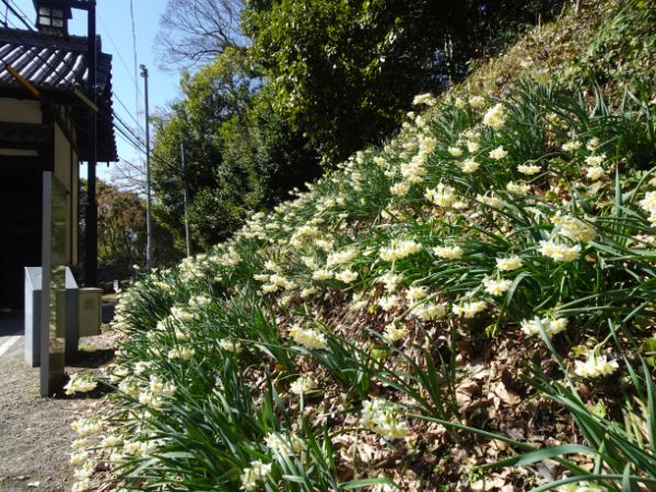 そして、「二ノ丸(梅園)」から「三ノ丸(広場)」に向かう道すがら、名島門付近で見つけたのが、一斉に咲き誇る水仙です。
