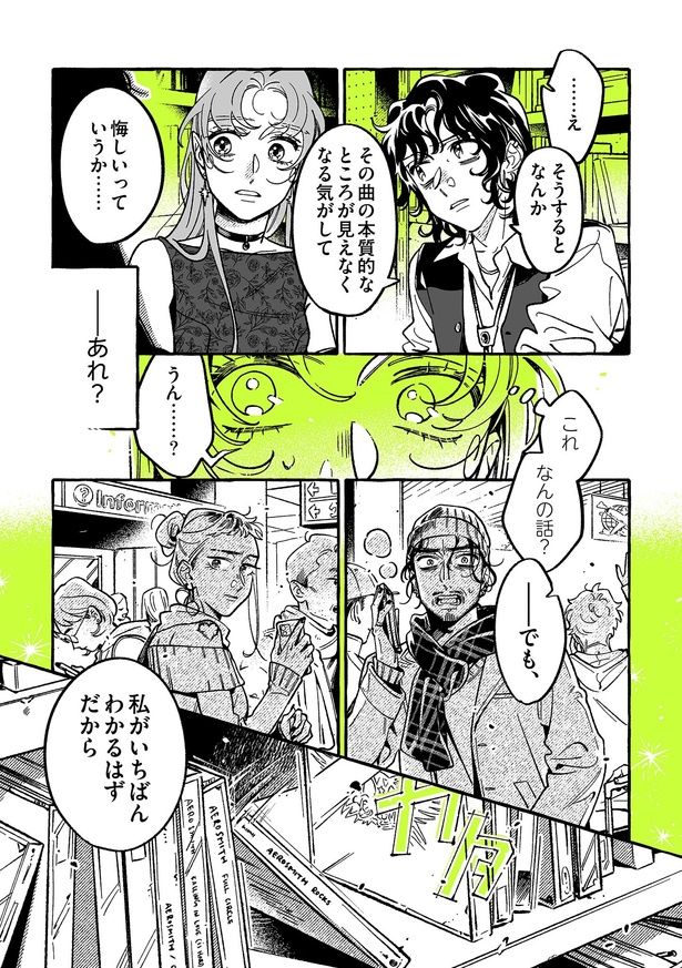 CDショップで働くミステリアスな「おにーさん」が気になる女子高生・あや。しかし、その正体はクラスメイトの目立たない女子・みつきだった。“気になってる人が、男じゃなかった”そんな誤解からはじまった2人の不思議な交流。卒業が迫るクリスマスのプロムの夜、ついに互いの関係にとって決定的な1歩を踏み出すことに!? かけがえのない友達からその先へ…2人の関係は静かに転がりはじめる――。SNSで注目を集める女同士の愛情ストーリー『気になってる人が男じゃなかった』。大好評だった1~3巻に続いて、2月19日発売の最新4巻より新たなエピソードをお届けします!