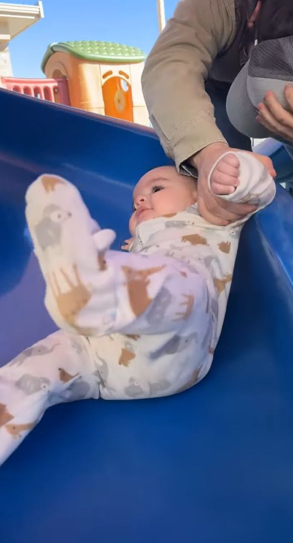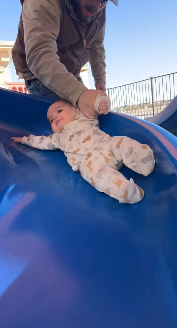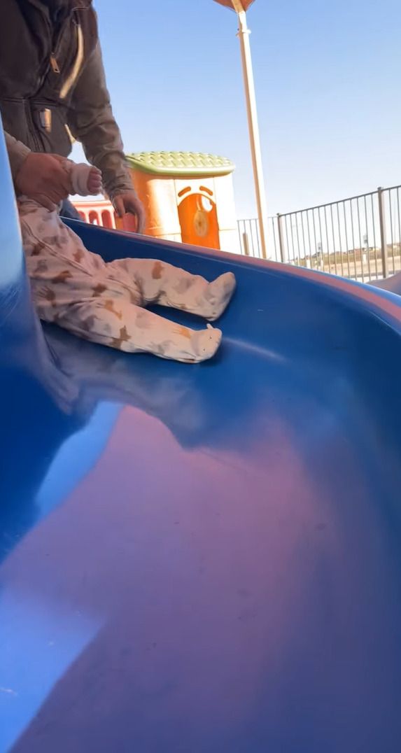 動画が撮影されたのはアメリカ・オクラホマ州の公園。 赤ちゃんがすべり台で遊んでいる様子を捉えた映像です。