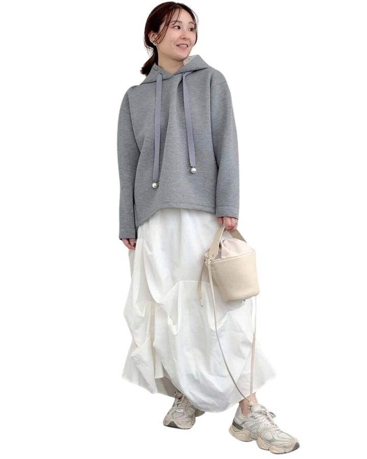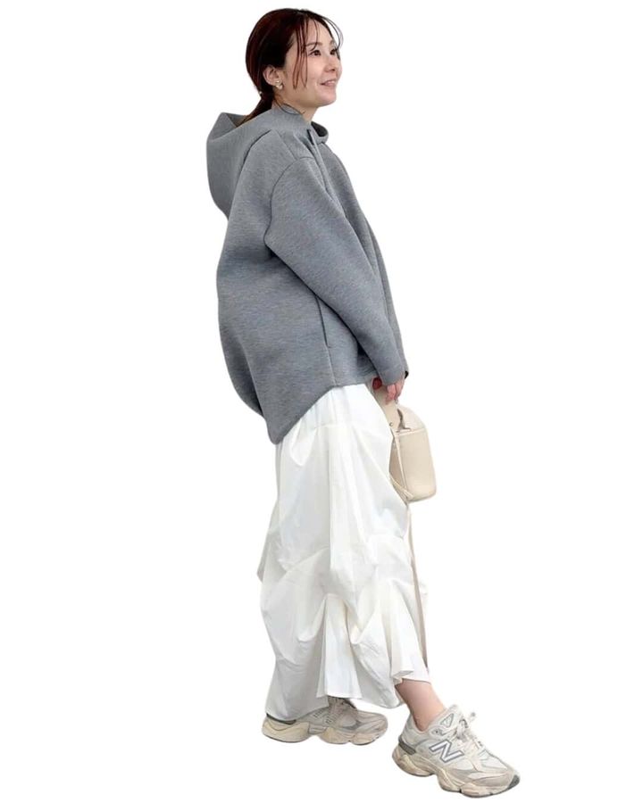 ②カジュアルになりすぎない、大人の「フーディー」コーデ