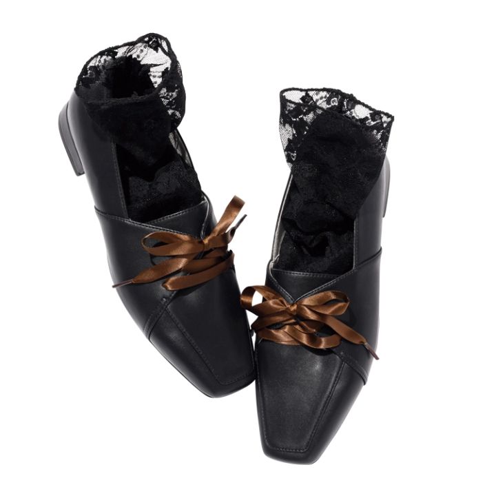 サテンリボンシューズ 7,700円/オリエンタルトラフィック(ダブルエー)レースソックス 2,200円/RESEXXY