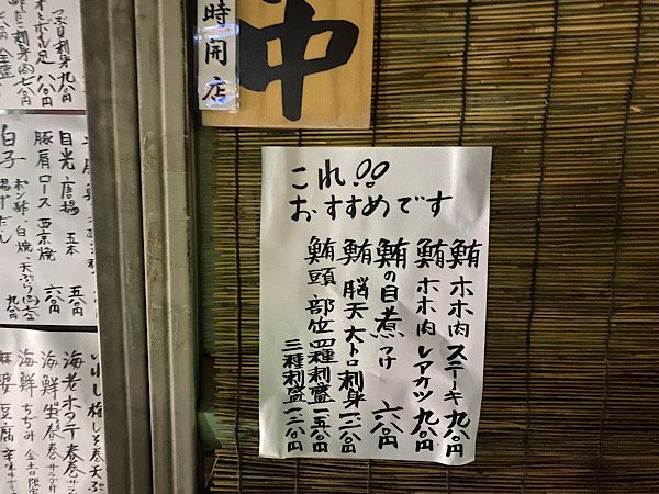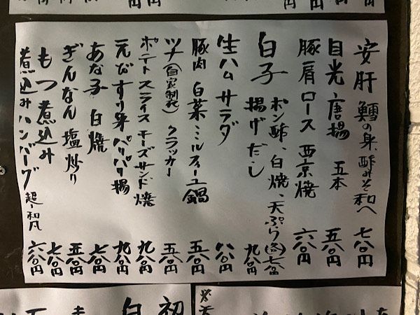 この日は塩辛のようなもの、ひじきの煮物、ミニ和風ハンバーグでした。お通しも全て大将の手作り!そして一口食べて、あまりの美味しさに感動!丁寧な仕込をされているのが伝わってきて、大将の料理愛に期待が高まります。