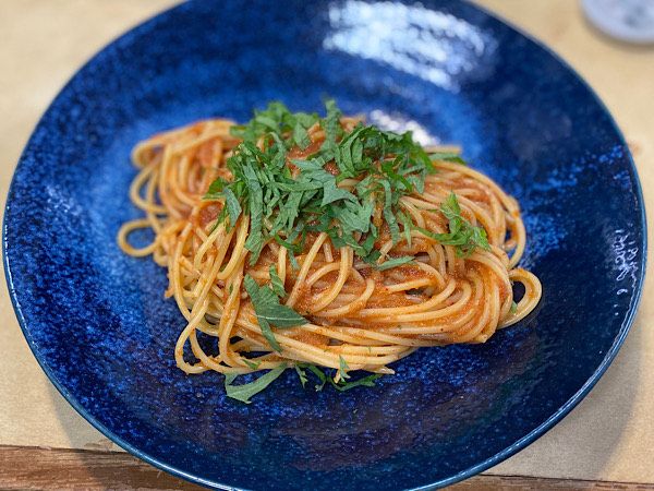 〆に注文したのは明太子パスタ!生の明太子がたっぷり絡んでいます。醤油と生のニンニクの風味も感じられて、パンチのある味わいでした。