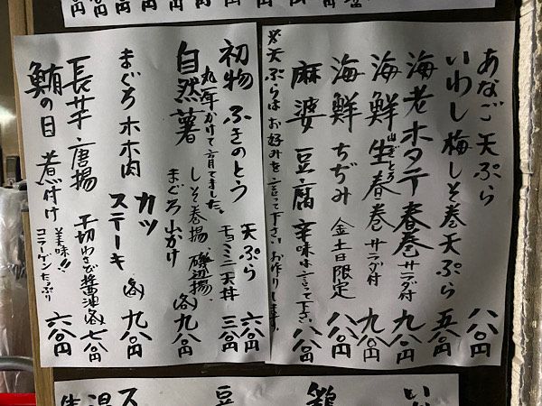 訪問時のメニューの一部はこちら。