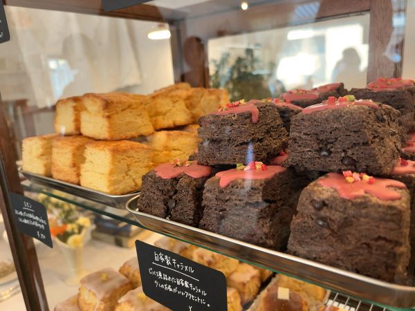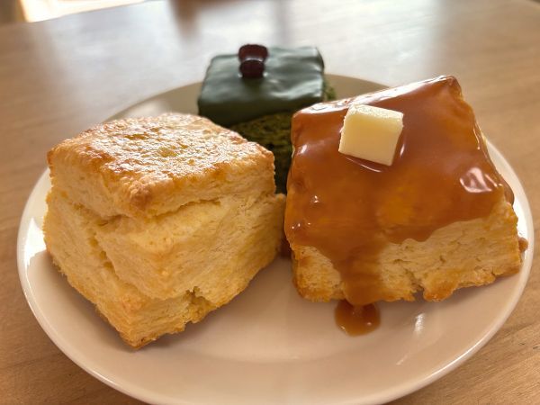 ショーケースの中には、可愛らしく並べられたスコーンがずらり。どれにしようかと迷いますが、まずはずっと食べてみたかった「自家製キャラメル」を迷わず選択。続いて「リッチバター」と「宇治抹茶」を選びました。どれも本当に美味しそうです。
