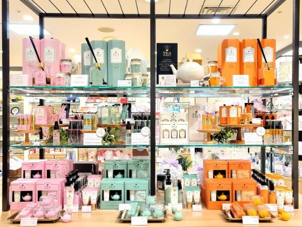最近のイチ押しは「TEA MEMORIALシリーズ」。紅茶の香りをオリジナルで表現したシリーズで、お店の一番目立つところに商品が並んでいました。ハンドセラムやマルチバーム、ソリッドパフュームなど、外出先でも紅茶の香りを楽しめるアイテムで、香りは「シャルドネダージリン」「オレンジアールグレイ」「白桃ウーロン」の3種類あり、井筒屋小倉店では「オレンジアールグレイ」が一番人気だそうですよ。