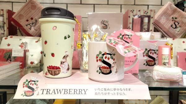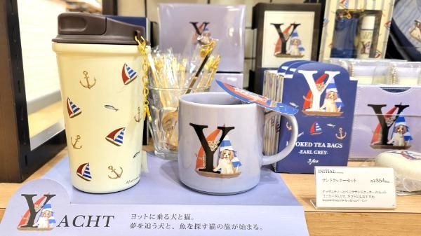 マグカップやミニタオル、ステンレスタンブラーなどバリエーション豊富で、ギフトとしても人気を集める「イニシャルシリーズ」のリニューアルも見逃せません。イニシャル展開は「A」「M」「S」「Y」「N」「R」「K」。「S」であれば「STRAWBERRY」、「Y」であれば「YACHT」など、アルファベットの一つ一つに、動物たちの小さなストーリーを添えたイラストが描かれたデザインになっています。ウサギや犬、猫、鳥が描かれているので、お気に入りの動物で選ぶのもいいかも。