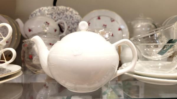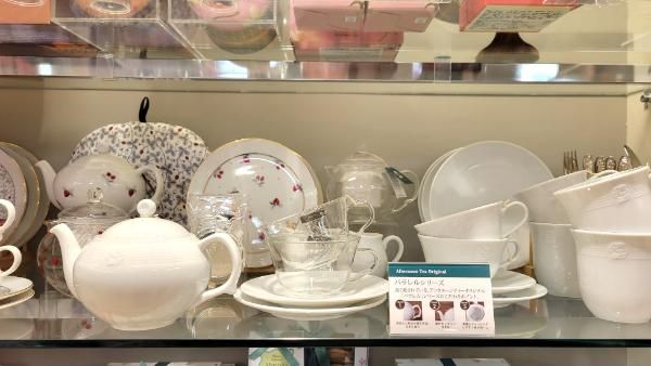小倉井筒屋新館1階にある「Afternoon Tea TEAROOM」でも使用されているので、白磁のティーポットに見覚えある!という人も多いのでは。ティールームで手にして気に入った人が自宅用に購入していくことも多いそうです。