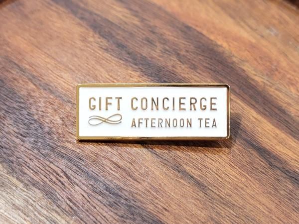 店舗には、ギフトに関する豊富な知識を持つギフトコンシェルジュが在籍。目印は胸元のバッジで、井筒屋小倉店の関根さんと津尾さんもギフトコンシェルジュです。「贈る方も贈られる方も笑顔になれるようなギフト選びをサポートします。『Today is a Gift. 今日を、ちょっといい日に。』をテーマに、ギフトを贈る楽しさをご提案します」と関根さん。