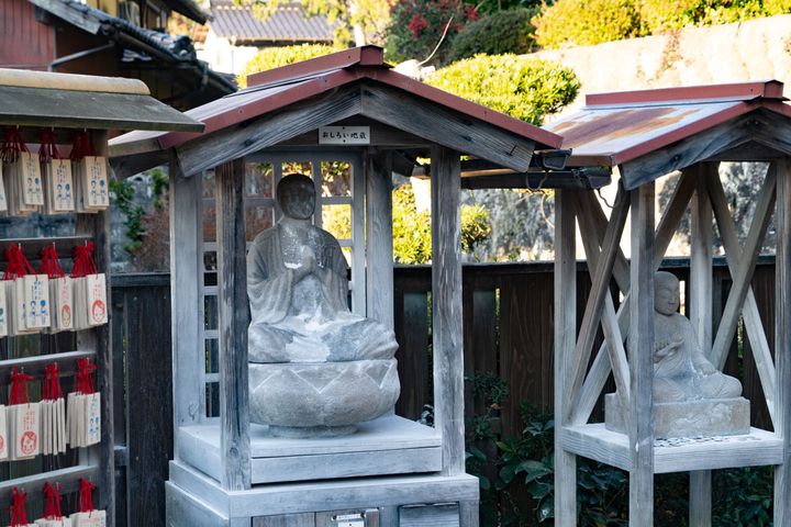 チェックインまでは少し時間があるので、玉造温泉街の散策をお勧めされました。川沿いにある足湯や、勾玉のお店、そして美肌、健康になれるようにお願いできる、清厳寺のおしろい地蔵さまがいらっしゃると聞き、早速お詣りに行きます。温泉街の散策や、かわいいおしろい地蔵さまとの出合いなど、旅先での何気ない発見を促してくれる界スタッフの気配りがうれしい。