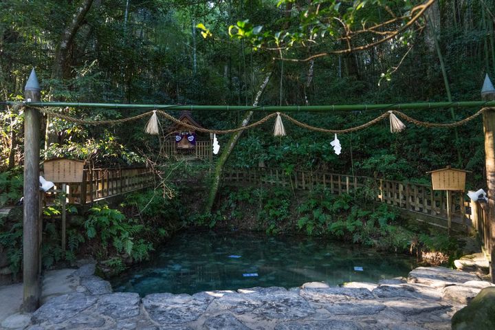 八重垣神社の境内奥にある佐久佐女の森には、「夫婦杉」、縁結び占いの「鏡の池」があります。「鏡の池」は、NHK朝のテレビ小説「ばけばけ」にも何度も登場しました。