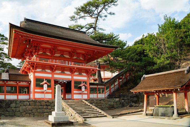 ご祭神は、日沉宮(下の宮、ひしずみのみや)は天照大御神、神の宮(上の宮、かみのみや)は素盞嗚尊の、二柱の神様が鎮座されています。厄除けや縁結びをご利益とした霊験あらたかな神社です。朱塗りの壮麗な社殿は日光東照宮に携わった宮大工が手掛けたと伝わります。海の景色と相まってまるで竜宮城のよう。とても美しい神社です。