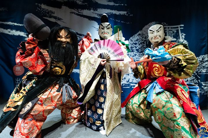 「石見神楽」の演舞はすごい迫力。神々が激しく闘います。終演後はゲストと記念撮影も旅の良い思い出作りに。