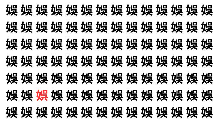 たくさんの「娛」の中に、よく似た別の漢字が1文字だけ隠れています。