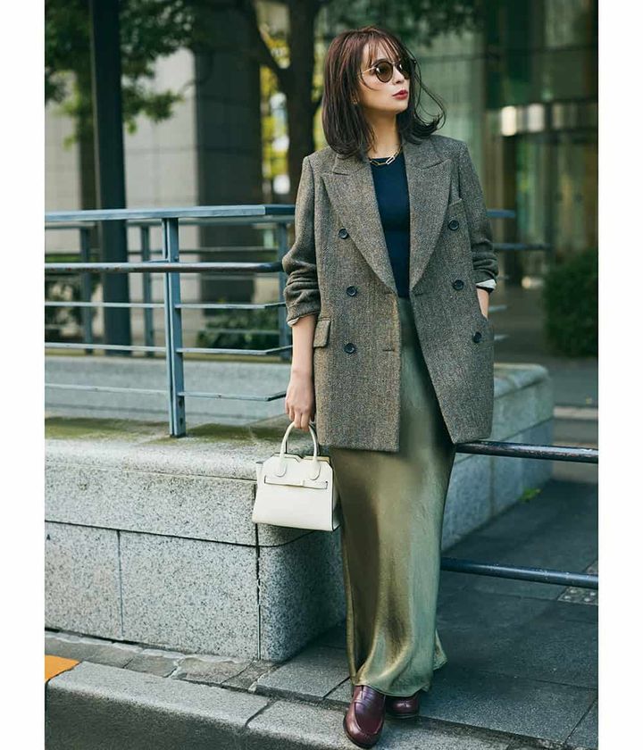 3. キレイめ派40代に!今いちばん洒落るトータルコーデは「ジャケットד女っぽ”スカート」〈3選〉