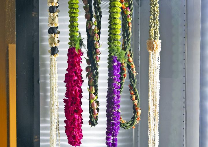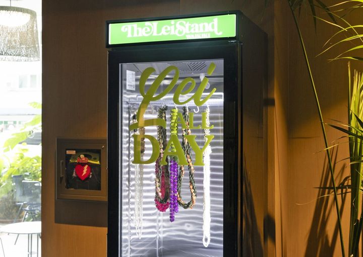 ダウンタウンにあった時代から、生花のレイを販売しているのもこちらの特徴。ホテルのロビーにあるクーラーボックスの中には、ハワイでも入手困難な個性的なレイが並んでいます。レイメイカーのこだわりにより、ハワイ産の植物以外は使わないというフレッシュで美しいレイは、ガラス越しに見るだけでも幸せな気持ちになります。