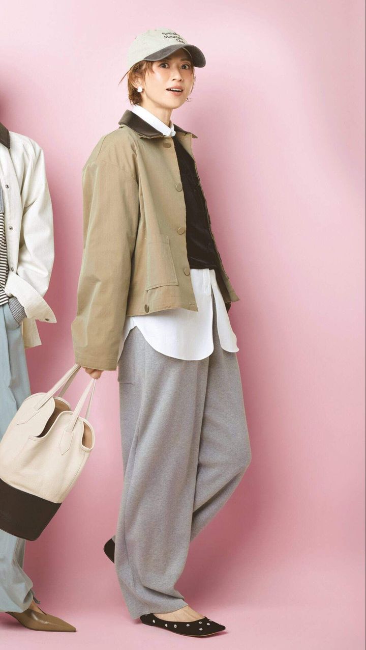 ジャケット¥49,500(サードマガジン)カーディガン¥8,910(ミラ オーウェン/ミラ オーウェン ルミネ新宿2店)シャツ¥51,700(マディソンブルー)パンツ¥53,900 (エイトン青山)バッグ¥181,500 (J&M デヴィッドソン/J&M デヴィッドソン カスタマーセンター)シューズ¥41,800 (ピッピシック/ベイジュ)キャップ¥7,700(シー/エスストア)ピアス¥29,700(片耳価格)(マユ/マユ ショールーム)