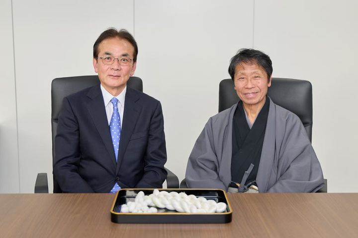左=「大日本蚕糸会」会頭・松島浩道さん。右=西陣織「細尾」会長・細尾真生さん。 撮影=田村 聡