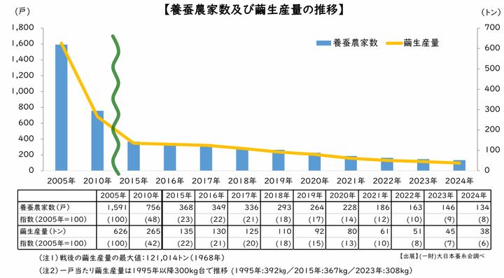 大日本蚕糸会「蚕糸業の現状について」令和7年10月より転載。 資料提供=大日本蚕糸会