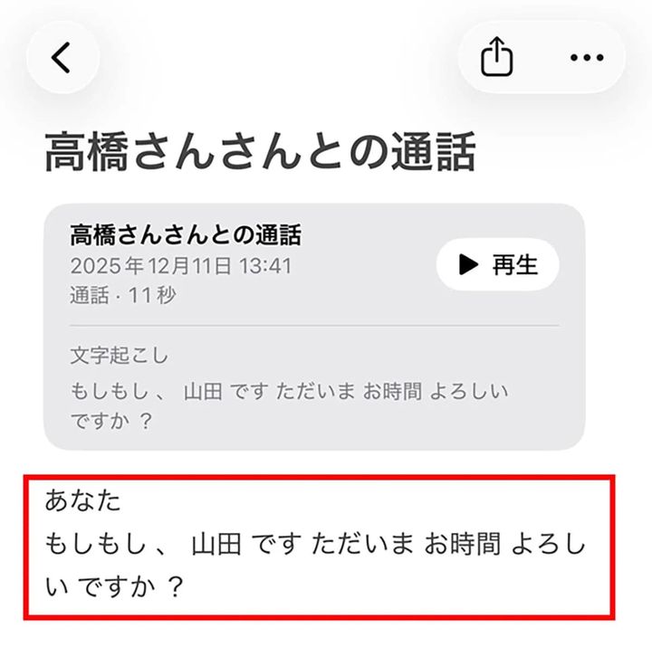 録音データはメモアプリに保存され、文字起こしも自動で行われます。詐欺電話への牽制にもなるため、積極的に活用したい機能です。