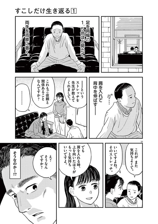 自分の事務所を構え、自由気ままに生きる弁護士・間敏郎42歳。中年となった彼は近頃、肩こり・猫背など、ちょっとした体の不調に悩まされていた。孤独に生きる間だが、周囲の人々の知恵を拝借し、徐々に自身の体のほころびにせっせと向き合っていく……。不調な体に効くストレッチが満載の健康ドラマ『すこしだけ生き返る』を再掲載でお届けします。