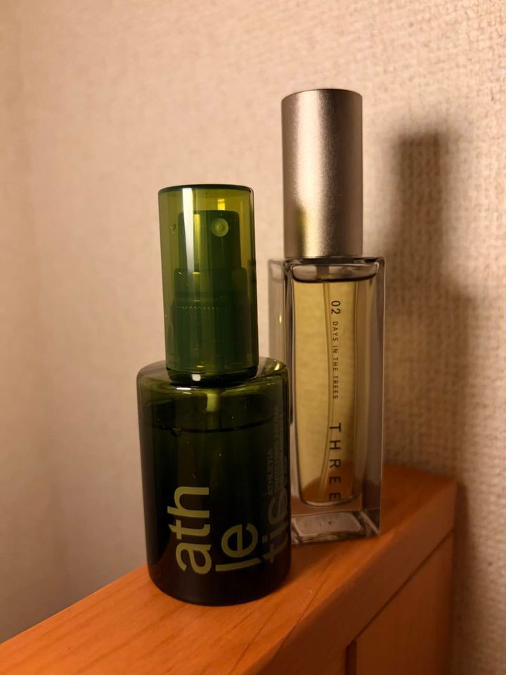 もう1品も、天然精油100%のTHREEのフレグランス。石や花、果実や土といった自然のエレメントを香りに落とし込み、呼吸とマインドに寄り添う、「樹」をテーマにしたアロマです。朝露をたっぷり含んだ樹木や苔を思わせるヒノキやスパイシーなサイプレスに、グレープフルーツやユズの清らかな明るさ、さらにサンダルウッドやパチュリの深みが重なり合うウッディな香り。パジャマに着替えたあとシュッと纏うと、まるで夜の森に身を置いたかのように呼吸がゆっくり整い、心のざわつきやモヤモヤがすーっと静まっていくような感覚に。眠る前、デコルテにひと吹きするのが、最近の密かな儀式になっています。
