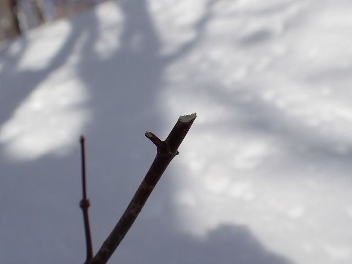 ユキウサギの食べた痕。前歯で噛み切った痕がはさみで切ったみたいになります。