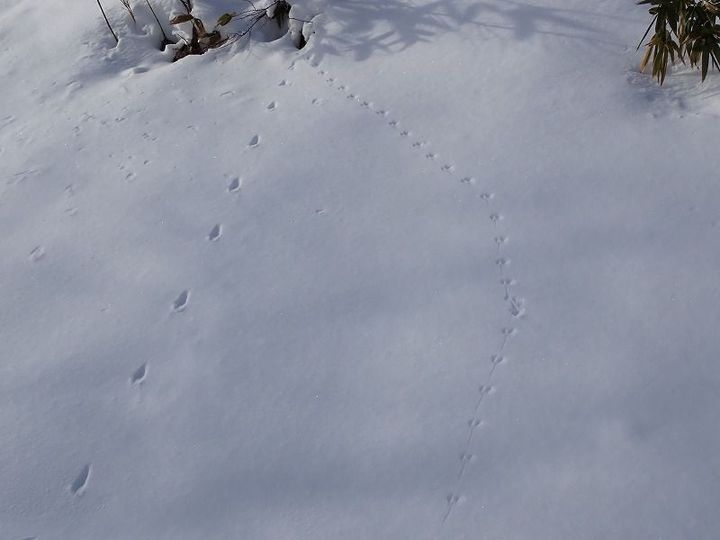 小さな跡が連続してついているのは、穴から出てきたネズミの足跡。