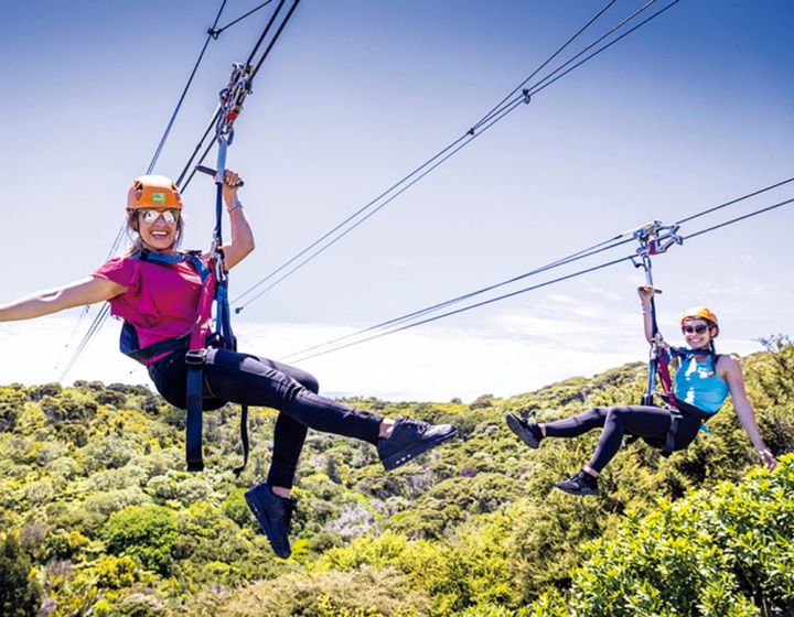 ワイヘキ島の豊かな森や海を眼下に望みつつ、全長200m超のワイヤーを滑り降りる空中アクティビティ。環境保護区の上空を通るため、ダイナミックな景観を堪能できます。スリルの中にも、自然と溶け込むような静かな心地よさが広がるのも魅力。体験後はガイドと歩くネイチャーウォークがセットになっており、動植物や保全活動について学べるのも人気の理由。