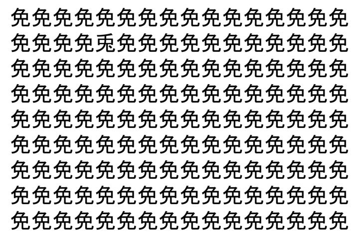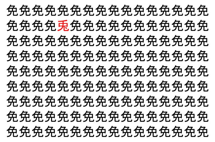 画像の中には、「免」という漢字が縦に9行、横に16個並んでいます。 全部で144個となりますが・・・、そのうち1つは「異なる漢字」となってますよ!!