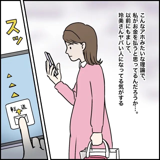 こんなアホみたいな理論で私がお金を払うと思っているんだろうか・・。どちらかというと私のほうが玲美さんに慰謝料を請求したいくらいなのに・・。玲美さんは以前にもましてヤバい人になってる気がします。私は玲美さんからのメッセージをもう一度読み返すと、ためらうことなく太一に転送しました。