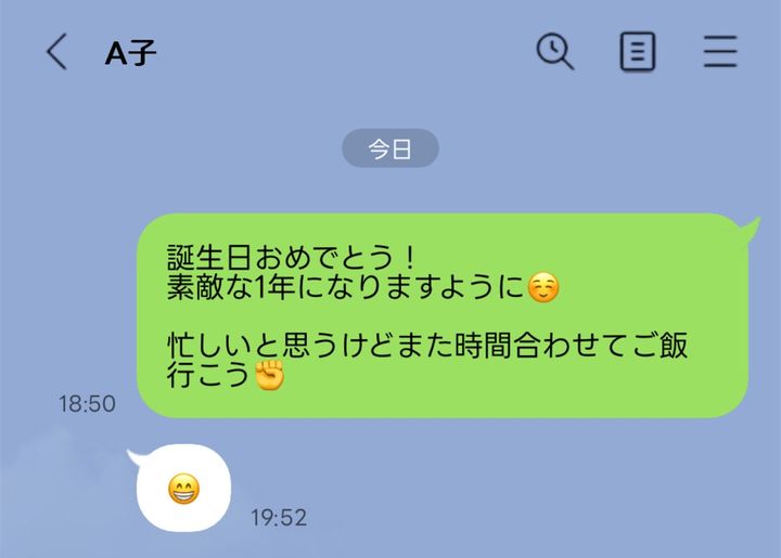 私の送ったLINEに、返事はスタンプのみ返してきました。すごくショックでした。メールの内容は、お祝いのおめでとうメールです。