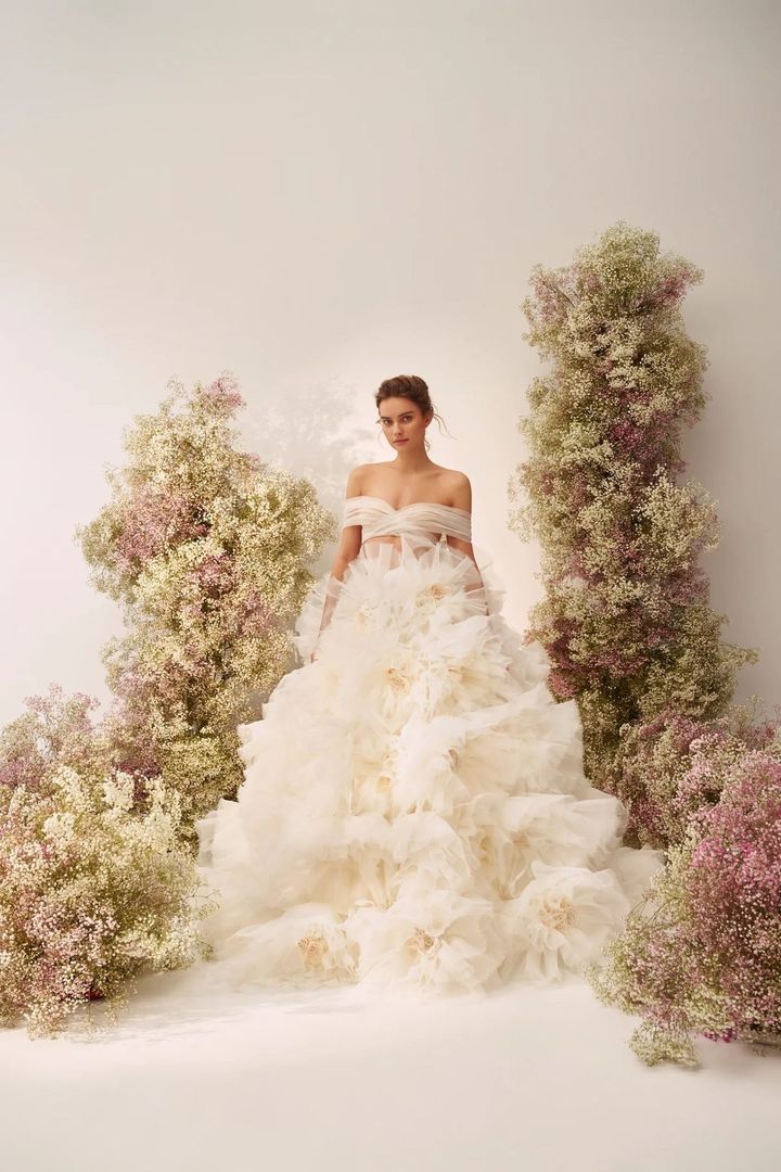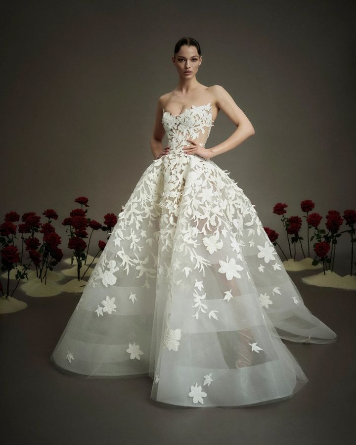 3. 【フラワーモチーフ】王道の人気を誇る、可憐な花モチーフのウエディング・ドレス10選