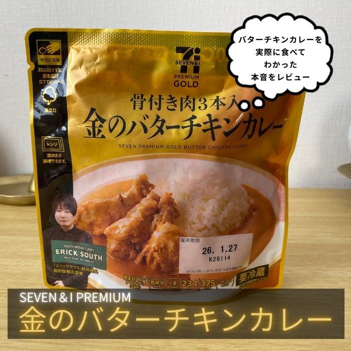 今回は、7プレミアムのゴールド骨付き肉3本入り"金のバターチキンカレー"について、「うまい」「まずい」と両方の口コミがあるようなので、実際に食べて真相を徹底調査していきます。また、コンビニカレーの中でも、ちょっと特別感がある「金」シリーズ。