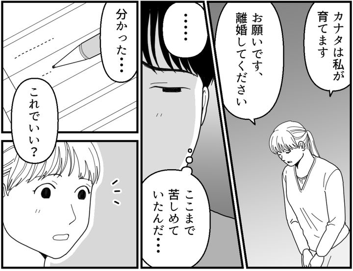 「お願いです、離婚してください」エリはそう言って頭を下げてきた。ここまでエリのことを苦しめていたかと思うと、あまりに自分がふがいない……。そう思いながら記入する。俺があまりにすんなり応じたから、エリも少し驚いていた。