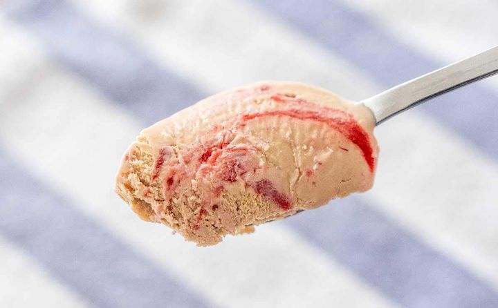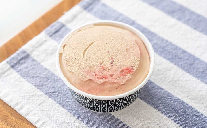 アイスの中には、いちご果肉が混ざっています。