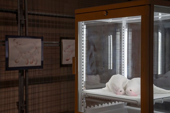最優秀賞を受賞した中西凛は、可食素材で制作する彫刻「eat sculpture」を展示。羊や鳩の姿をした彫刻を崩し、内部のチョコレートなどの洋菓子素材が露になっていく過程を記録した映像作品も共に見ることができる。作品には独自の儚さがありながら食と命の循環に関する作家の視点が際立ち、鑑賞者も自分事として捉えられるパワーのある作品だった。