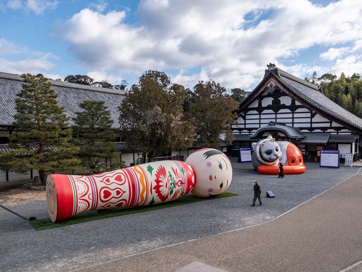 <写真>展示風景より。Yottaとヤノベケンジの作品が東福寺の空間と呼応している。