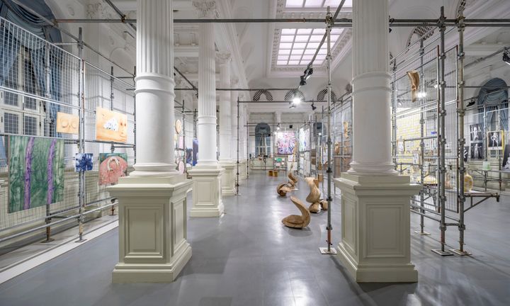 会場構成はドットアーキテクツが手掛け、建築の既存の装飾を生かしながら平面作品や彫刻、インスタレーションをじっくりと鑑賞できるように設計。これまでは会場が数か所に分かれていたが、今年から京都国立博物館に集約されたことで鑑賞者はより回遊しやすい構成となっていた。