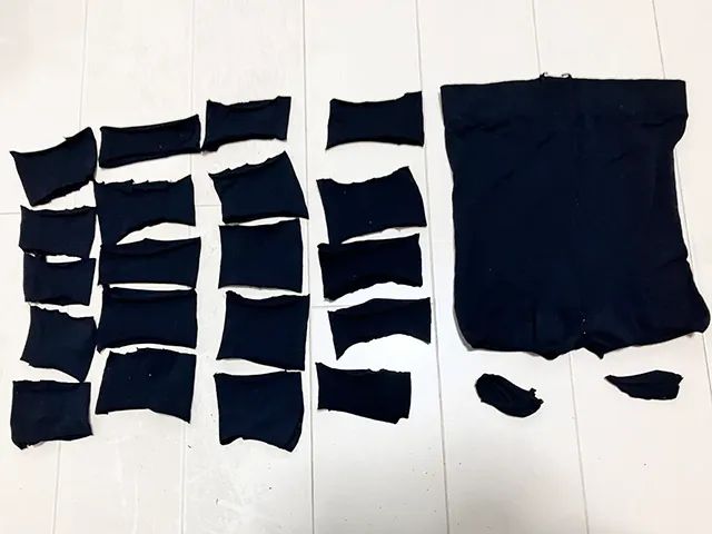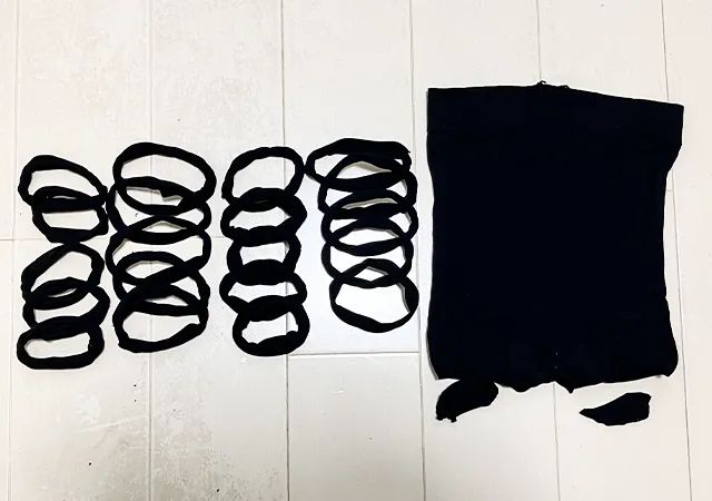 穴あきタイツを5cm幅に切る 1足からヘアゴム20個を作る手順