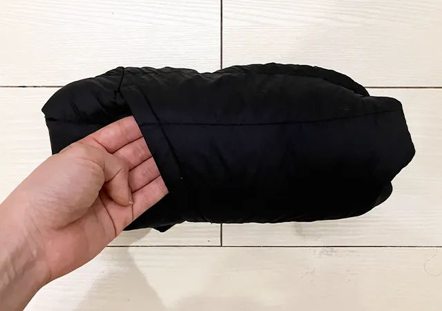 ポケットを裏返して包む 冬ベストをポーチなしで17cmサイズに小さくまとめる畳み方