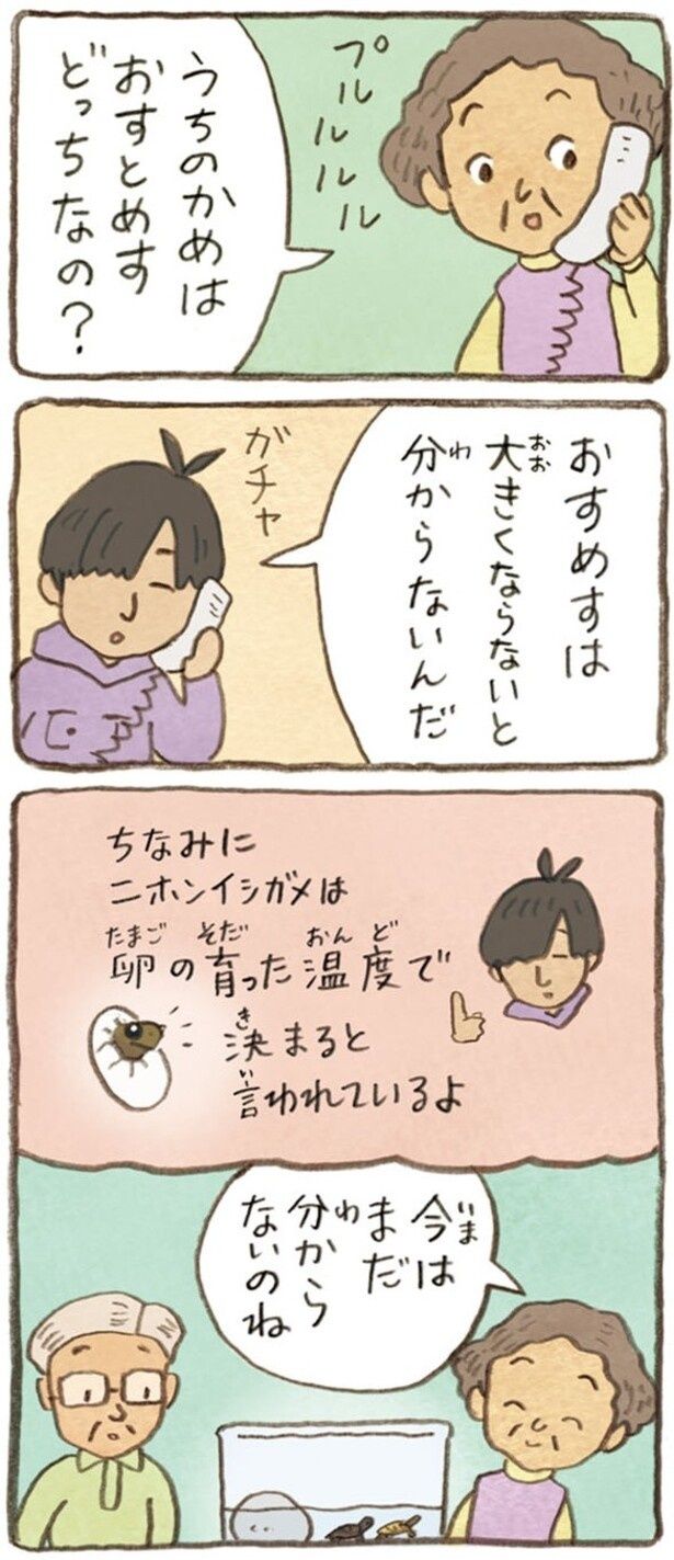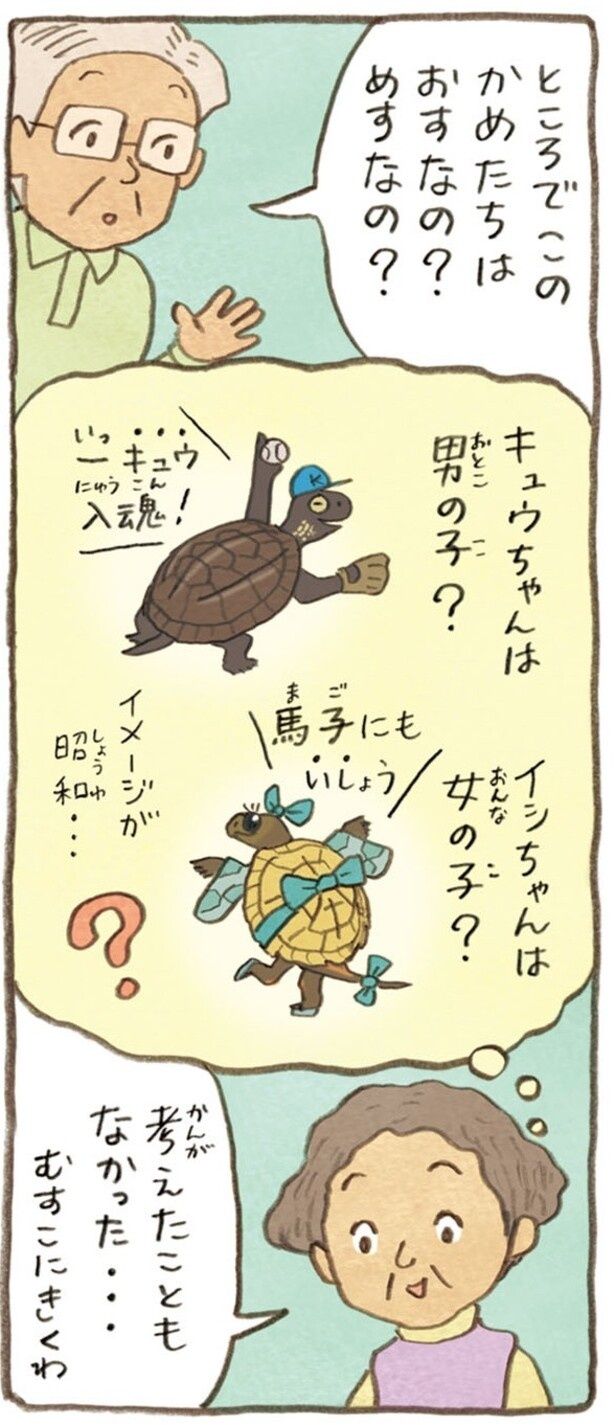 3. うちのかめはおす・めす、どっち? 息子にかめの性別の見分け方を聞いてみると…/おばあちゃんとかめ